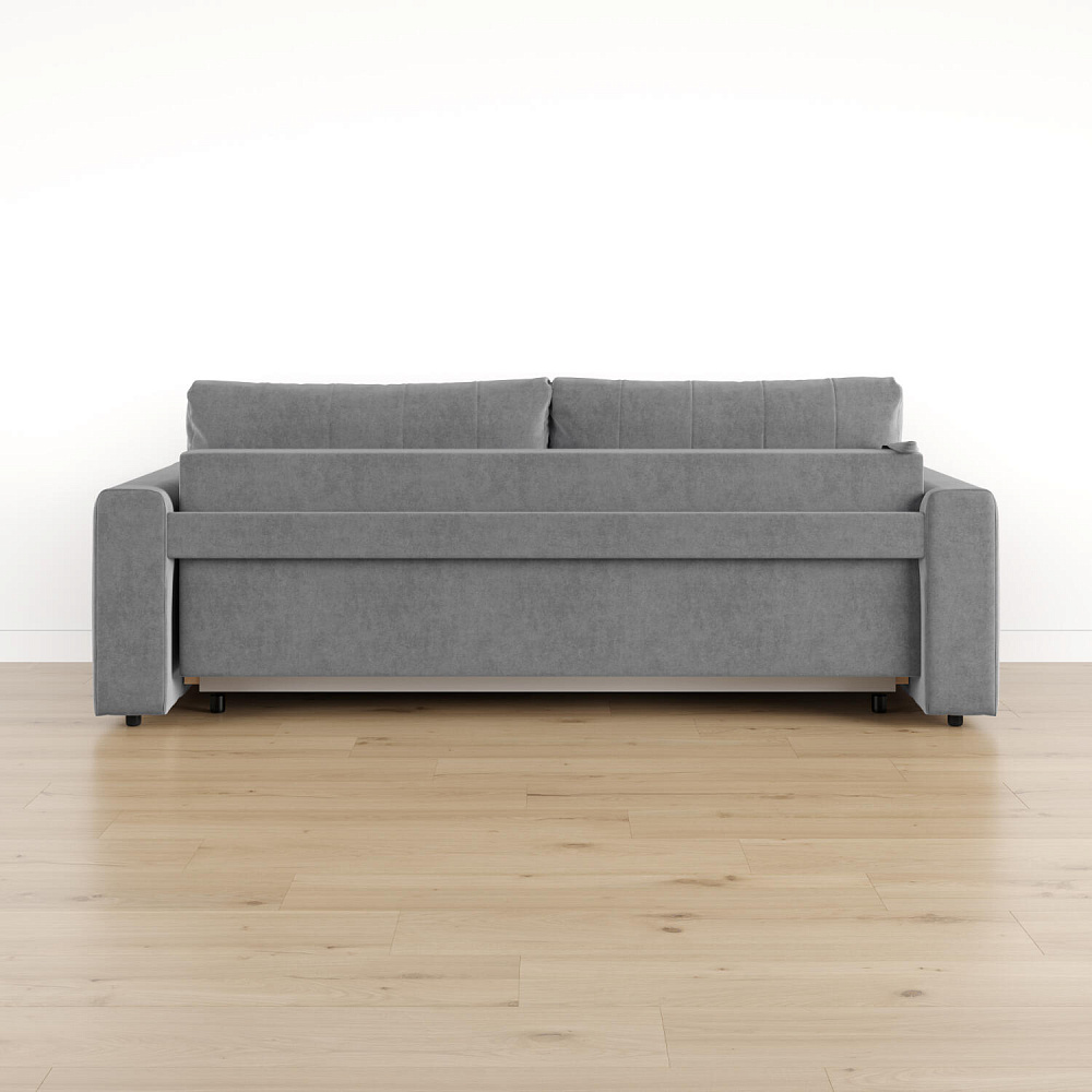 Обратная сторона спинки в обивочной ткани. Диван можно поставить вплотную к стене или посреди комнаты для зонирования пространства.