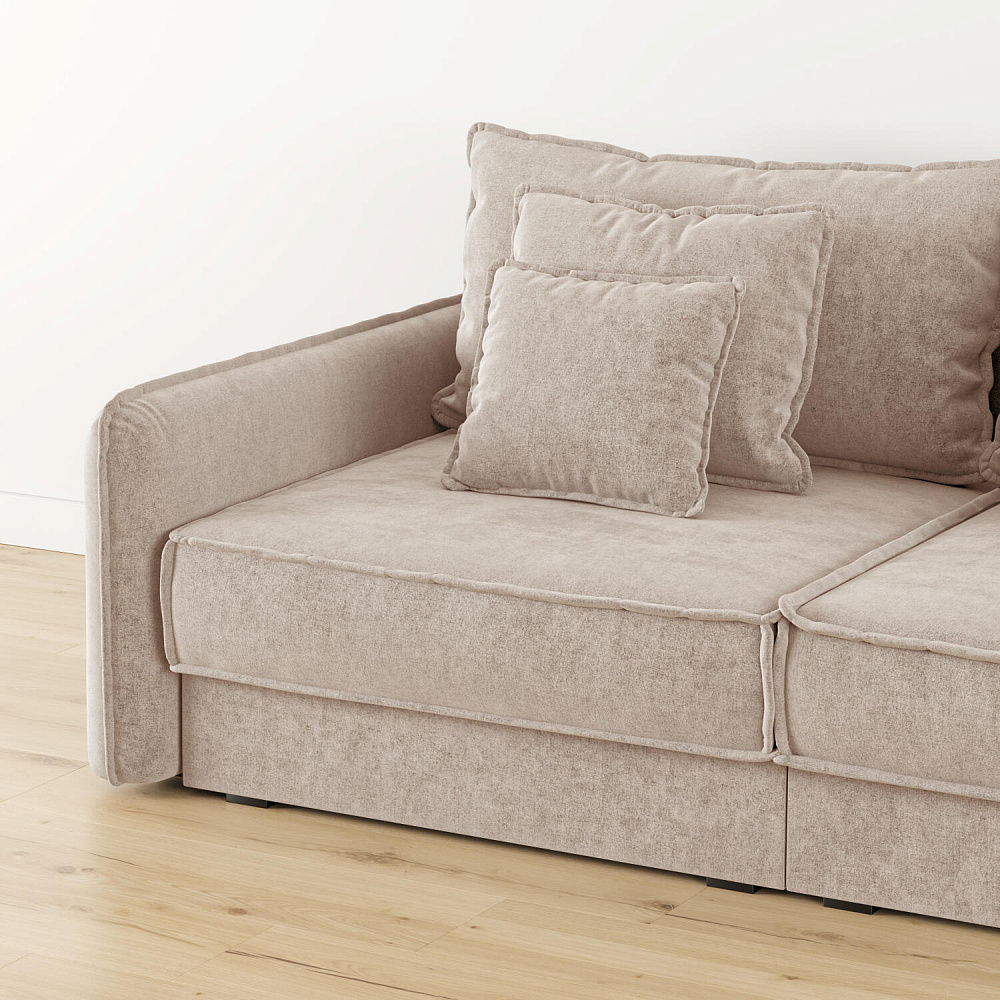 - Девять подушек в комплекте. 3 приспинных и 6 декоративных подушек разных размеров позволят скорректировать глубину посадки.