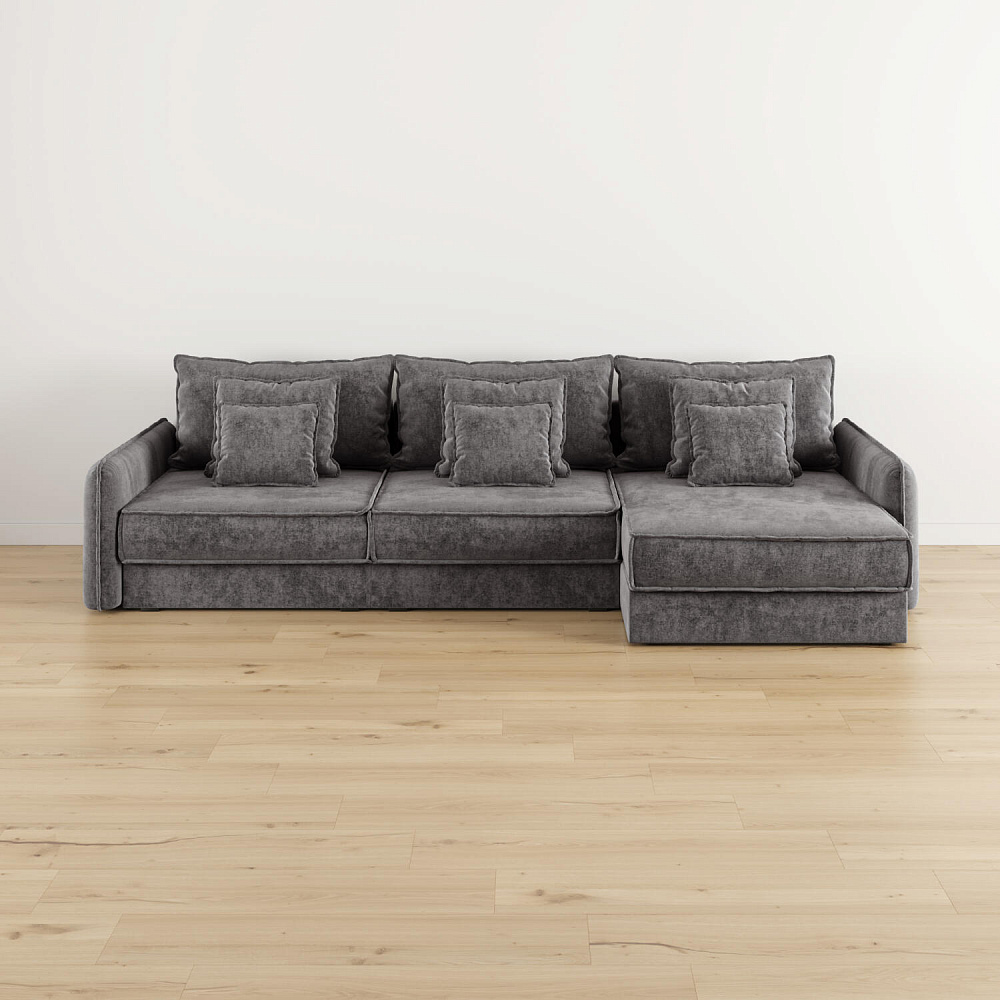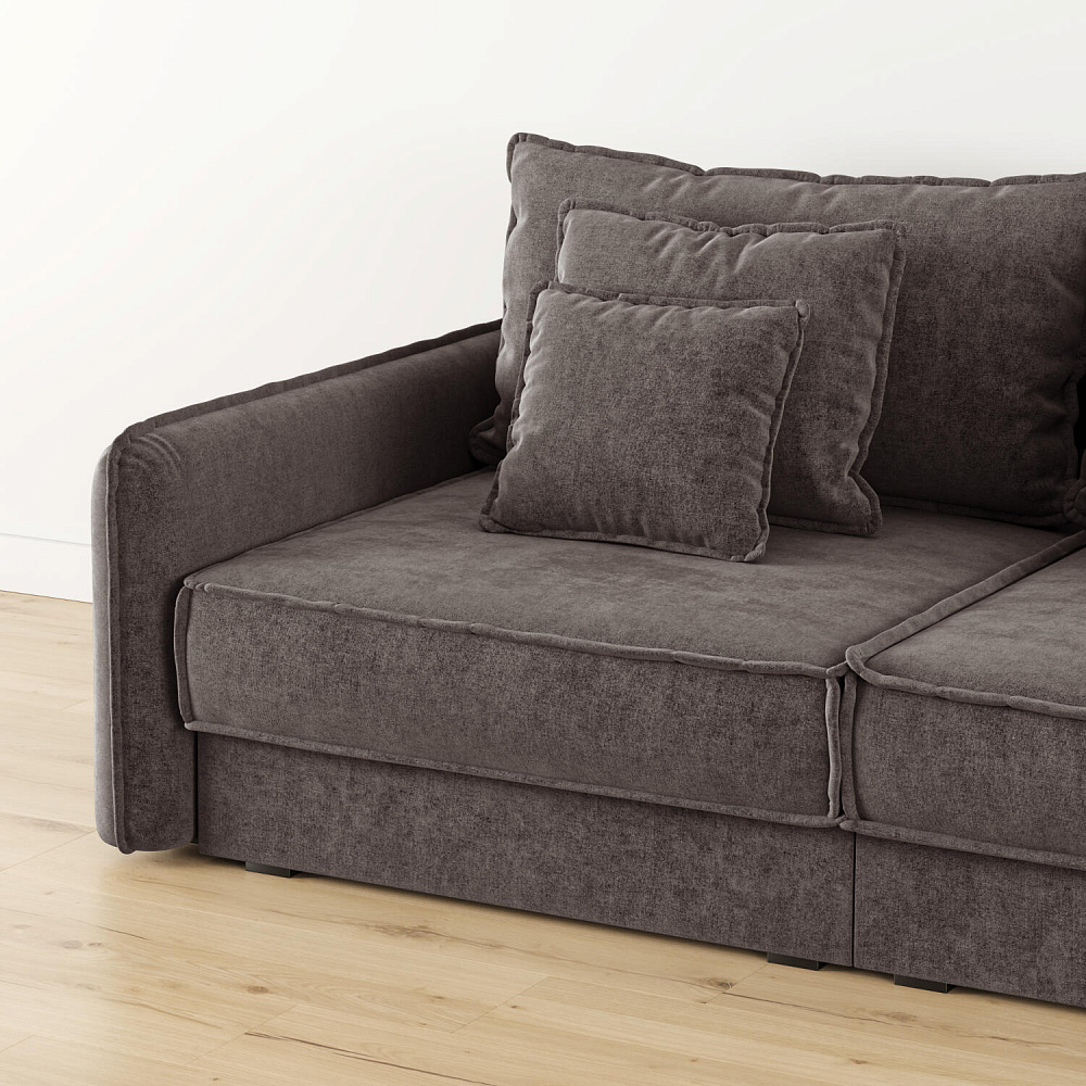 - Девять подушек в комплекте. 3 приспинных и 6 декоративных подушек разных размеров позволят скорректировать глубину посадки.