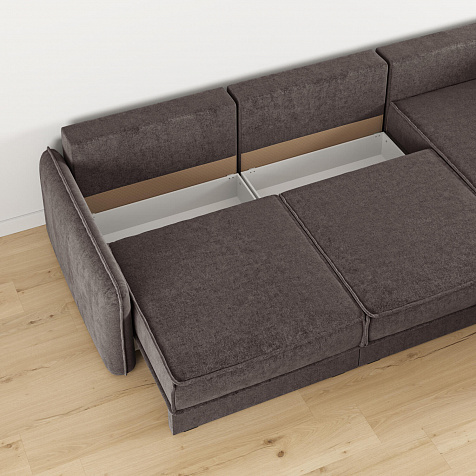 - Три короба для белья. В каждой секции и оттоманке предусмотрен вместительный короб для хранения постельного белья и других вещей.