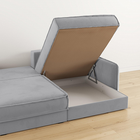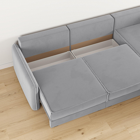 - Три короба для белья. В каждой секции и оттоманке предусмотрен вместительный короб для хранения постельного белья и других вещей.