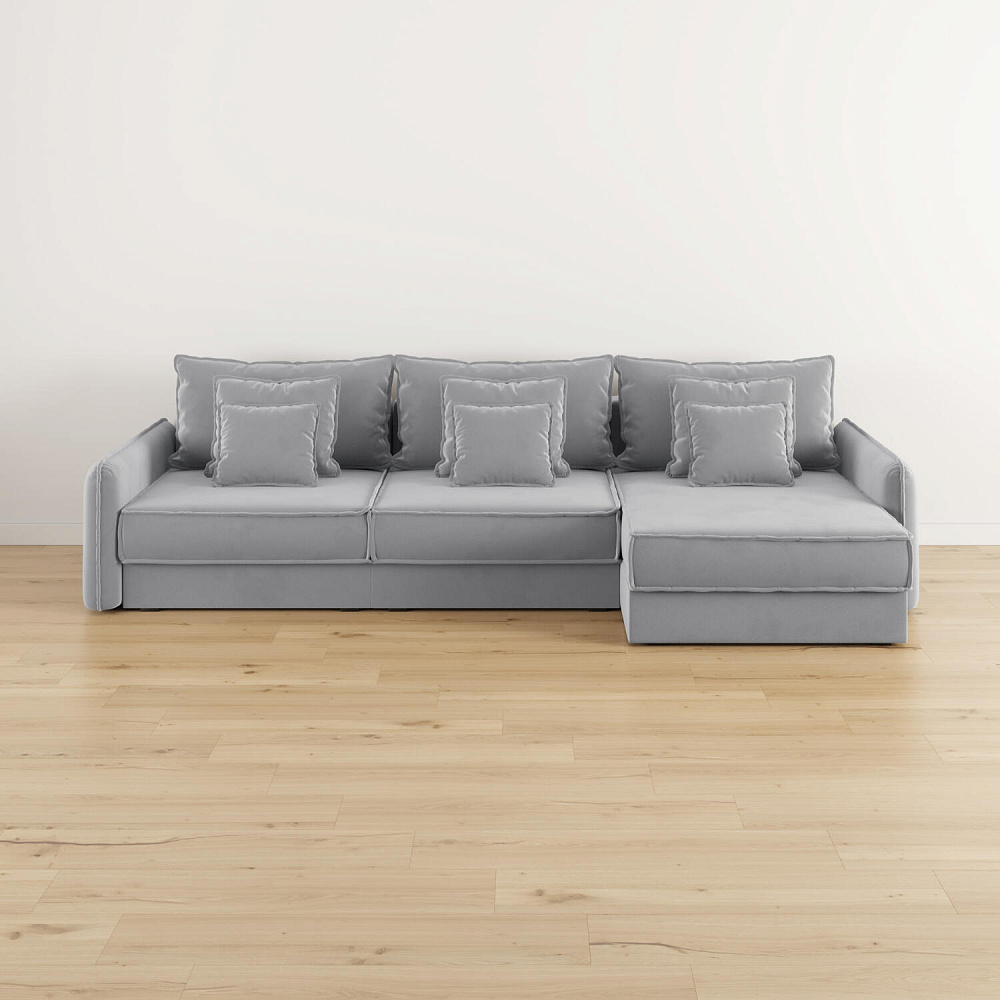 - Девять подушек в комплекте. 3 приспинных и 6 декоративных подушек разных размеров позволят скорректировать глубину посадки.