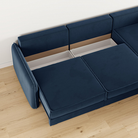- Три короба для белья. В каждой секции и оттоманке предусмотрен вместительный короб для хранения постельного белья и других вещей.