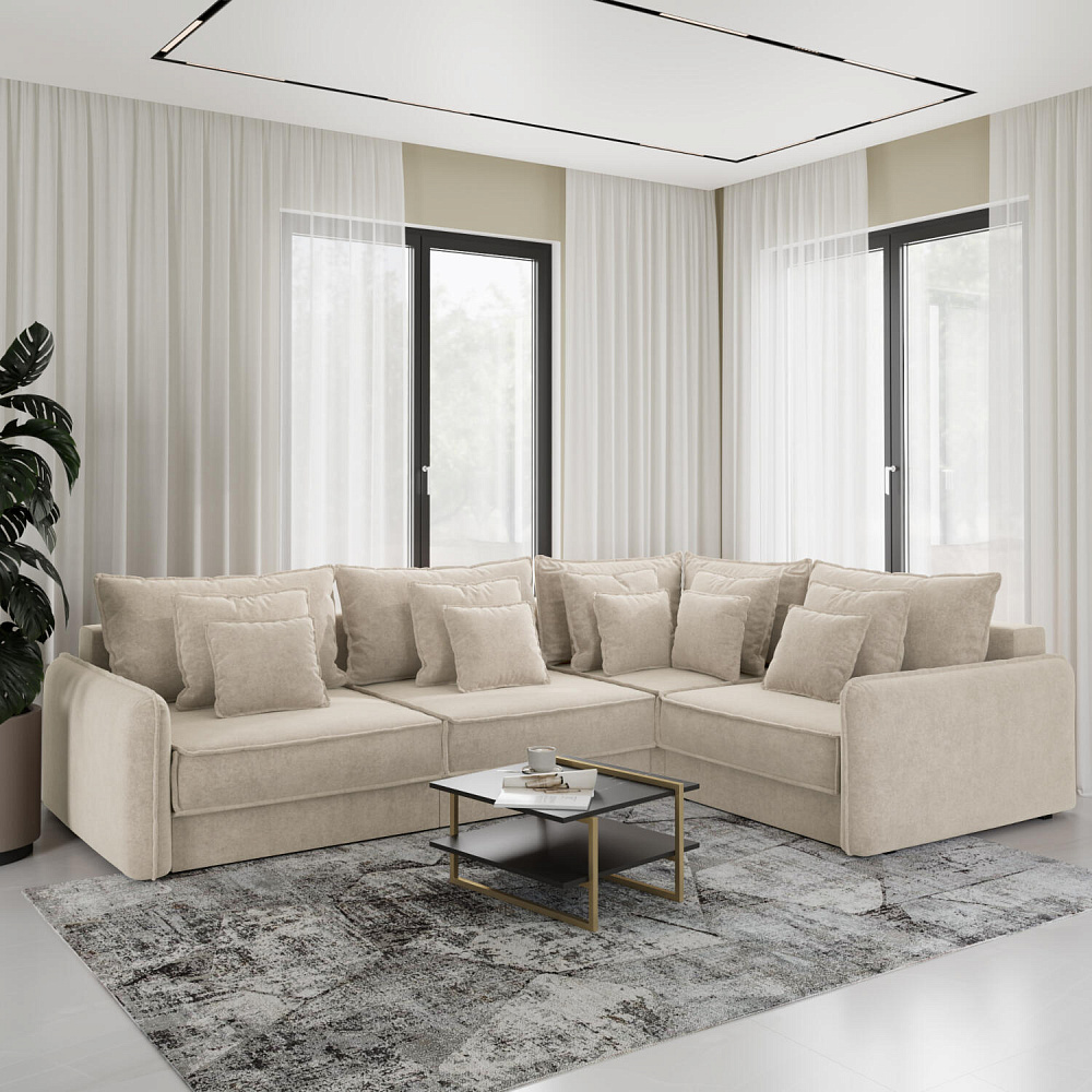 - 15 подушек в комплекте. 5 приспинных и 10 декоративных подушек разных размеров позволят скорректировать глубину посадки.