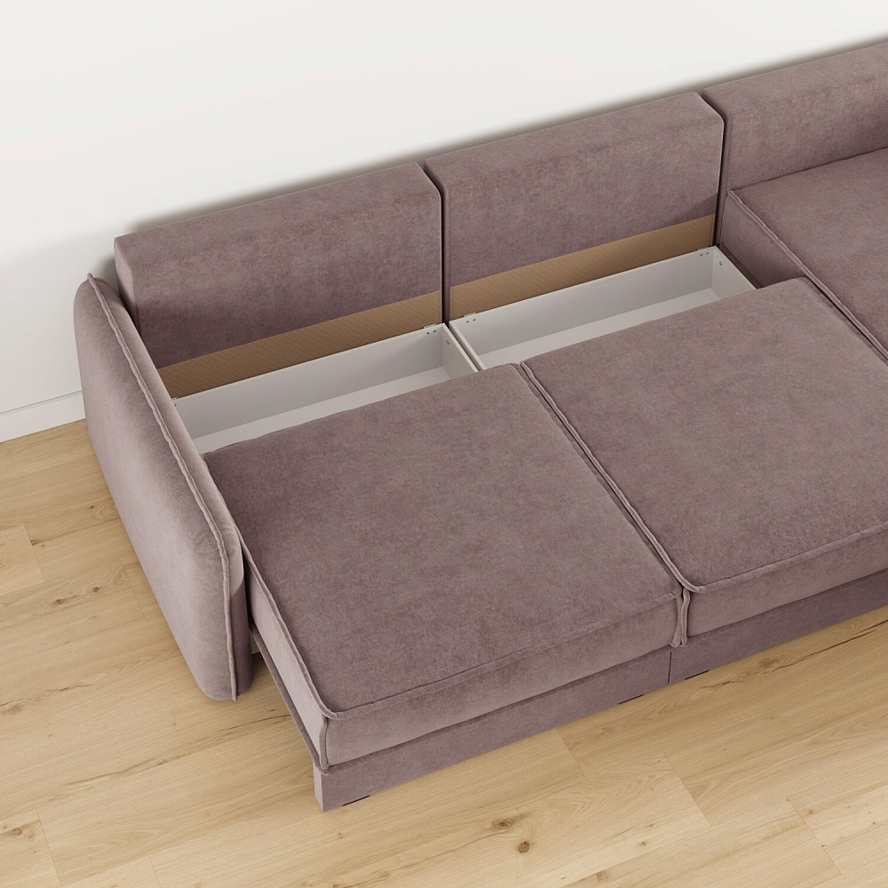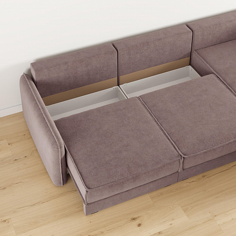 - Три короба для белья. В диванных секциях предусмотрены вместительные коробы для хранения постельного белья и других вещей.