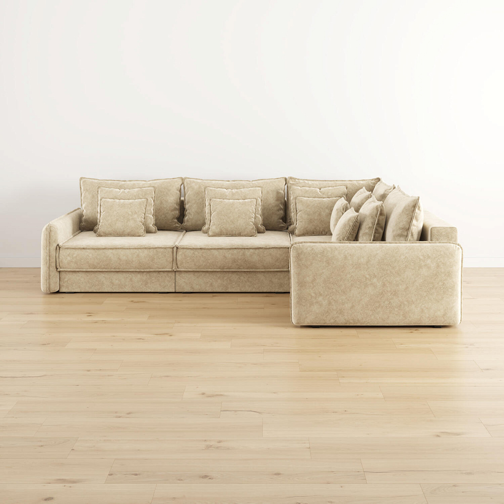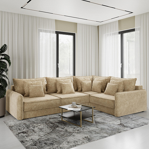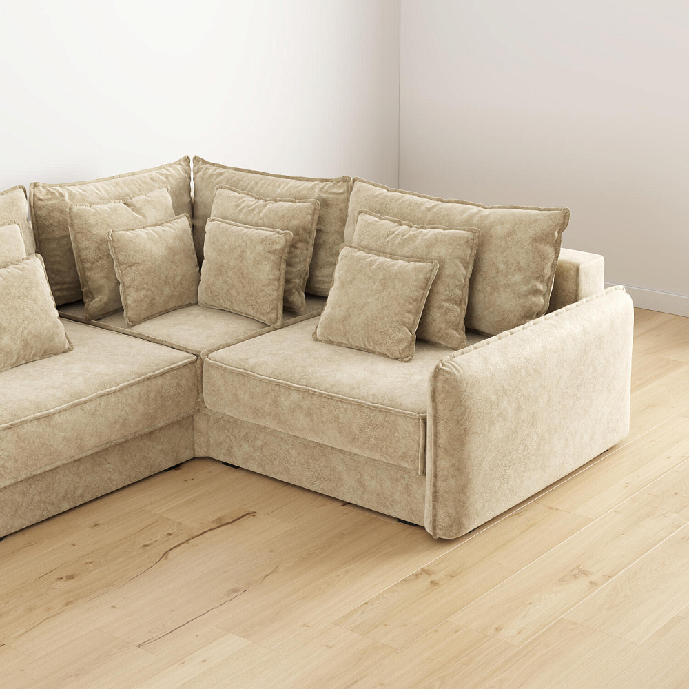 - 15 подушек в комплекте. 5 приспинных и 10 декоративных подушек разных размеров позволят скорректировать глубину посадки.