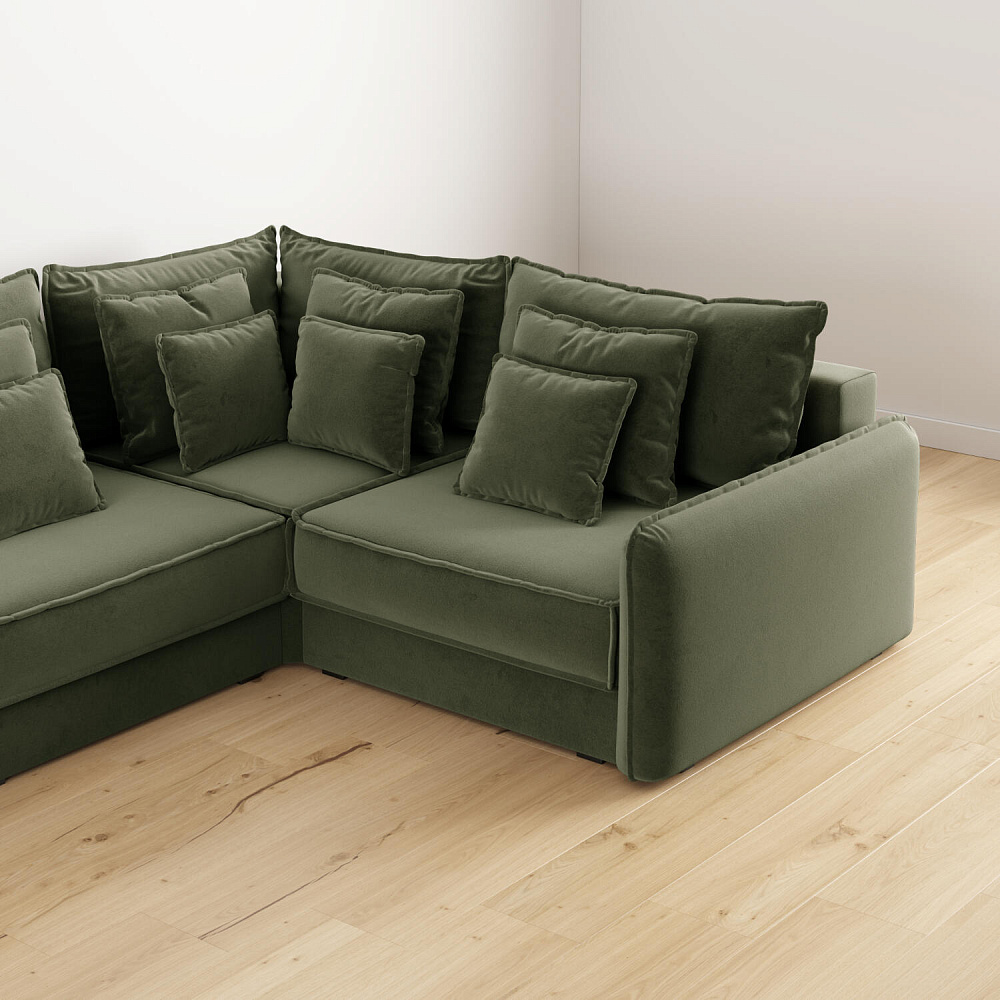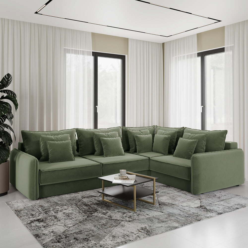 - 15 подушек в комплекте. 5 приспинных и 10 декоративных подушек разных размеров позволят скорректировать глубину посадки.