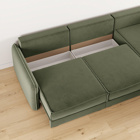 - Три короба для белья. В диванных секциях предусмотрены вместительные коробы для хранения постельного белья и других вещей.