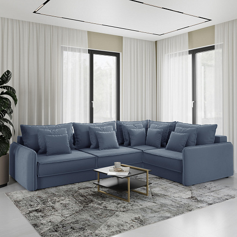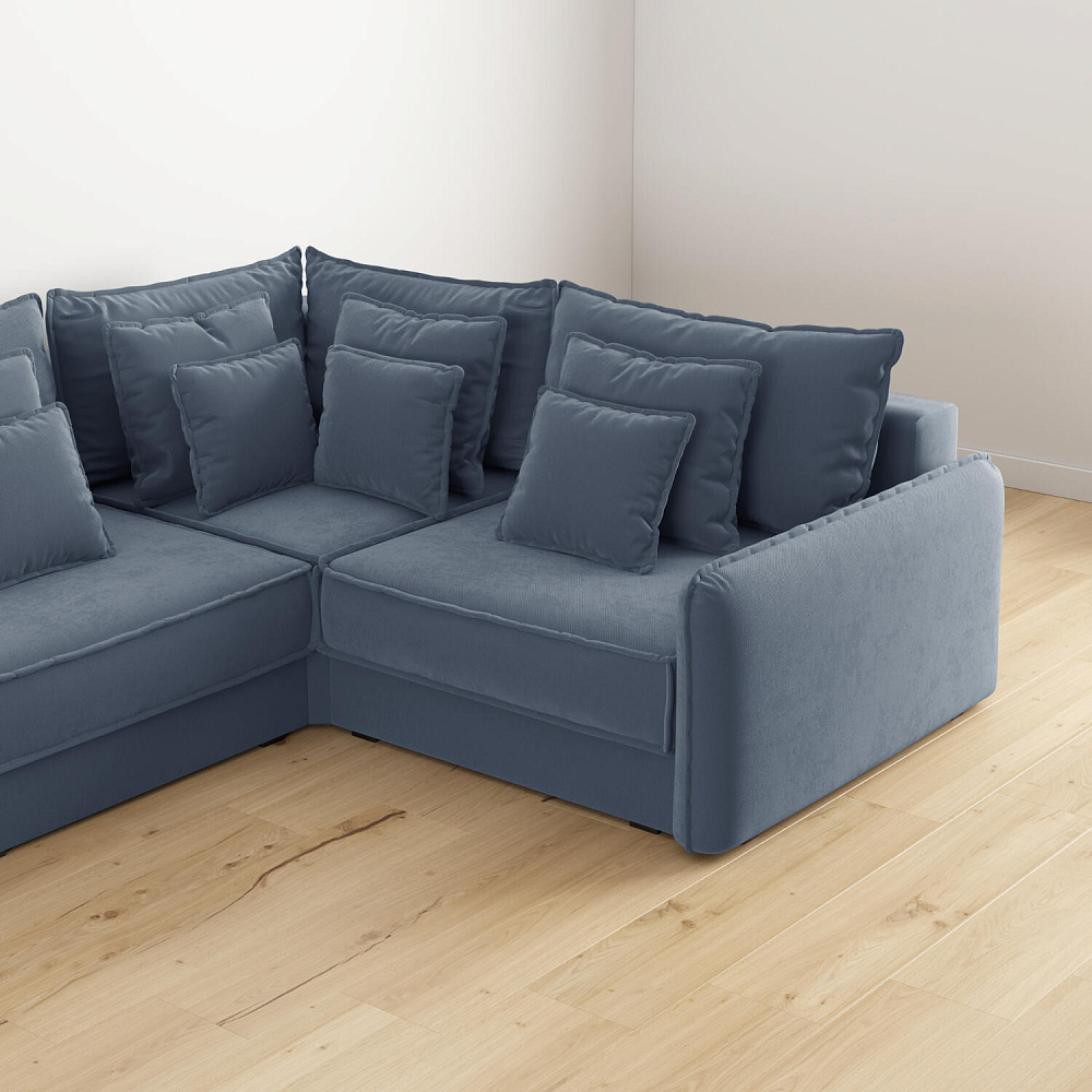 - 15 подушек в комплекте. 5 приспинных и 10 декоративных подушек разных размеров позволят скорректировать глубину посадки.