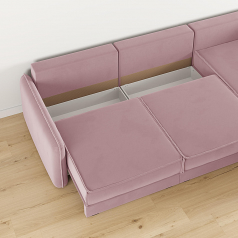 - Три короба для белья. В диванных секциях предусмотрены вместительные коробы для хранения постельного белья и других вещей.
