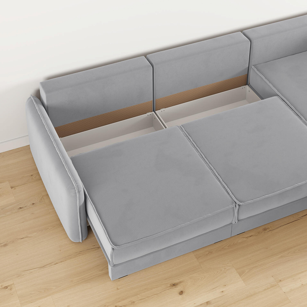 - Три короба для белья. В диванных секциях предусмотрены вместительные коробы для хранения постельного белья и других вещей.