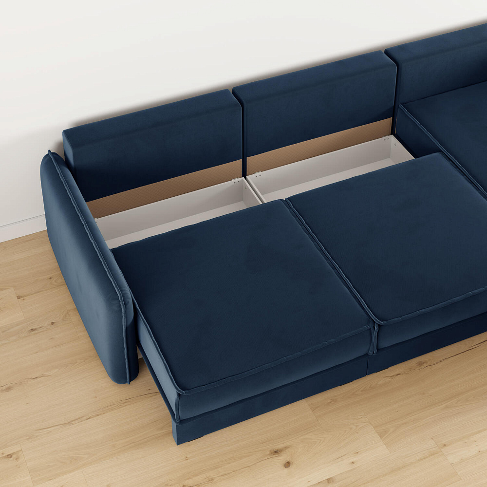 - Три короба для белья. В диванных секциях предусмотрены вместительные коробы для хранения постельного белья и других вещей.