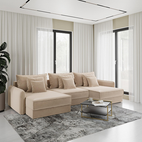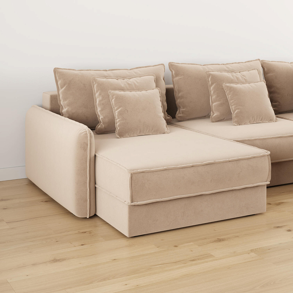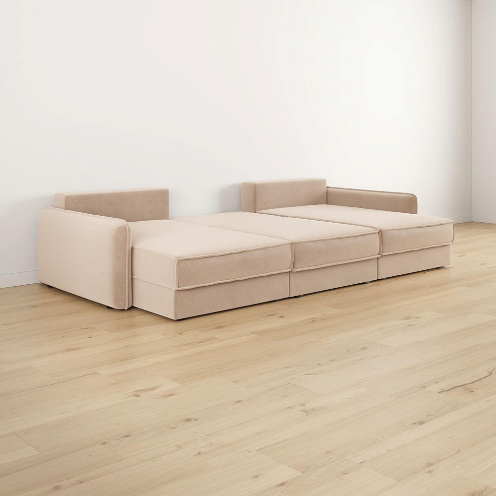 - Размер спального места — 300 х 147 см. Диван легко трансформируется в полноценное спальное место для сна и отдыха двух человек.