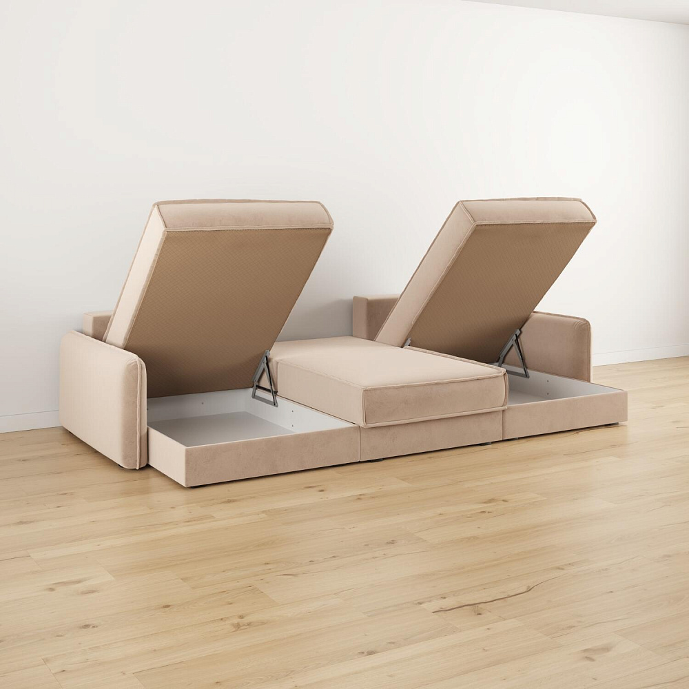 - 3 короба для белья. В диванной секции и оттоманках предусмотрены вместительные коробы для хранения постельного белья и других вещей.