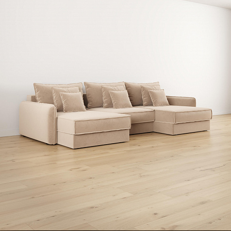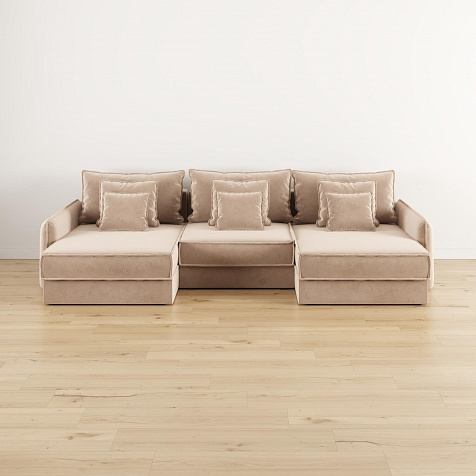 - 9 подушек в комплекте. 3 приспинных и 6 декоративных подушек разных размеров позволят скорректировать глубину посадки.