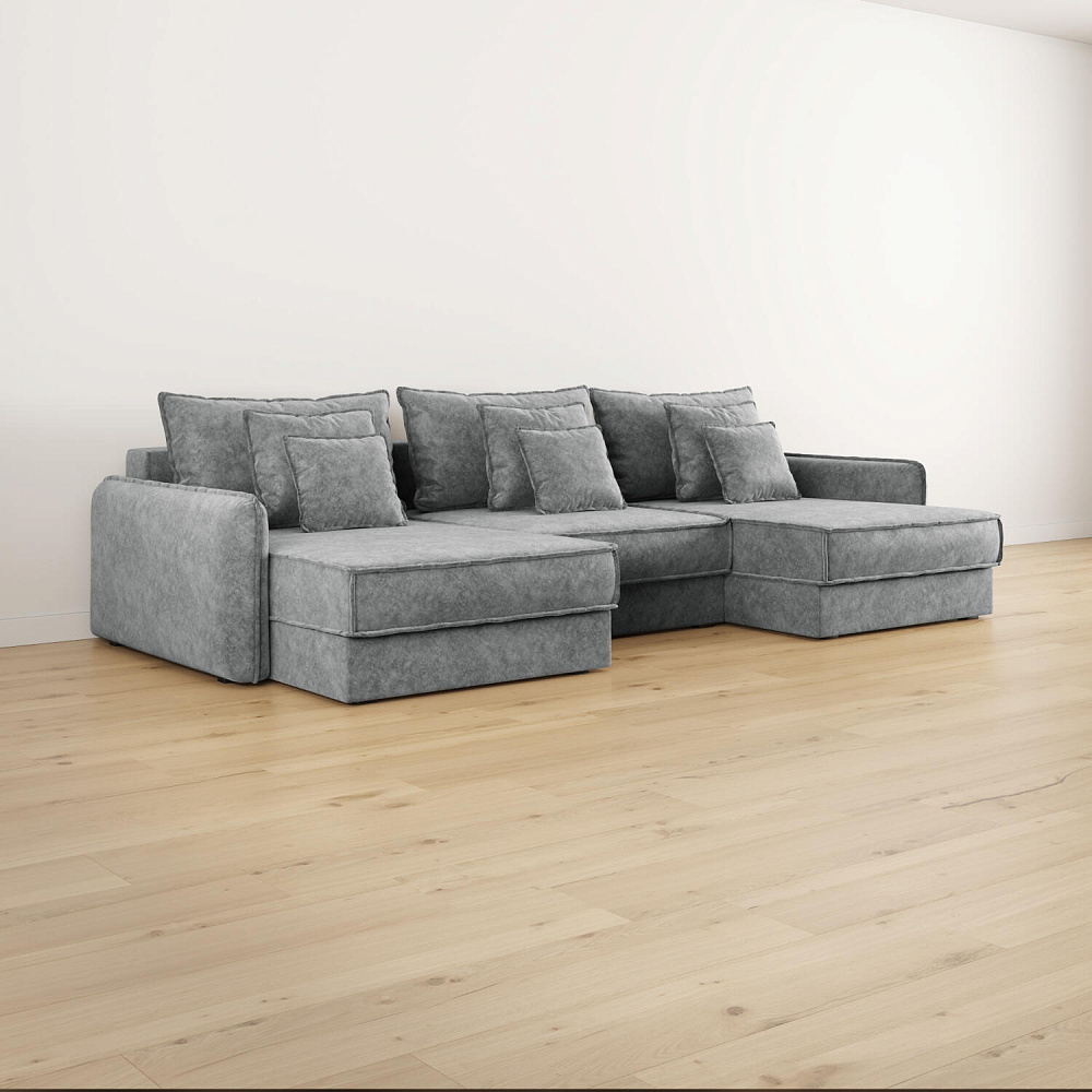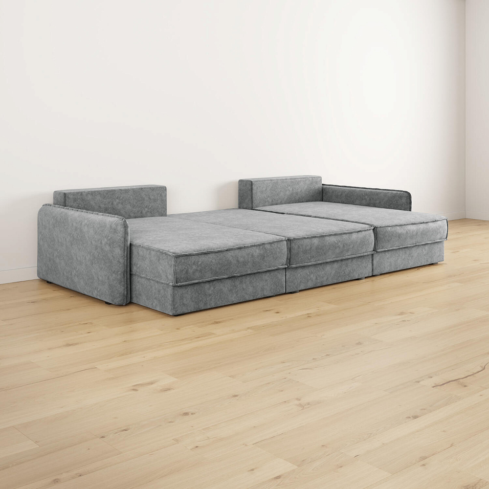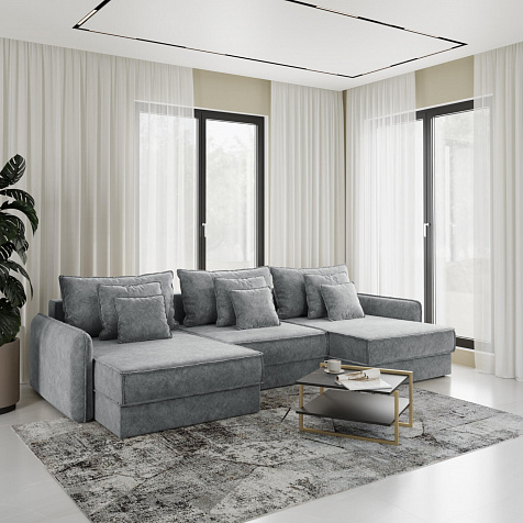 - Размер спального места — 300 х 147 см. Диван легко трансформируется в полноценное спальное место для сна и отдыха двух человек.