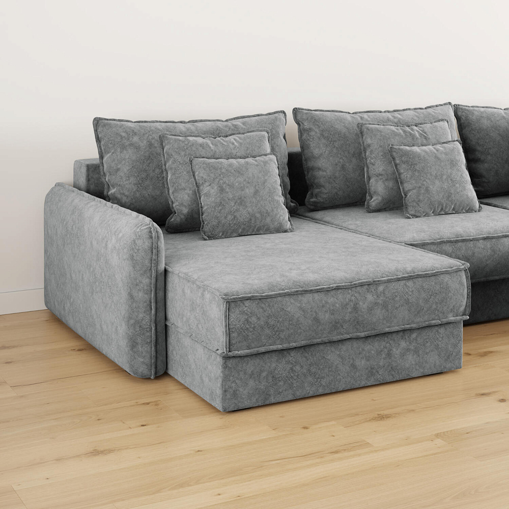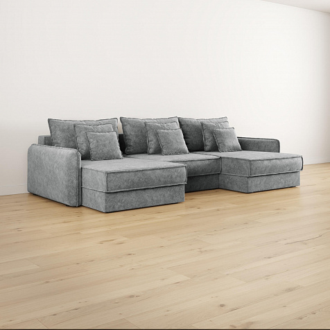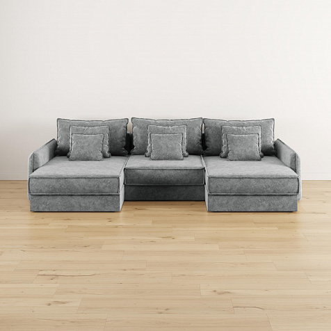 - 9 подушек в комплекте. 3 приспинных и 6 декоративных подушек разных размеров позволят скорректировать глубину посадки.