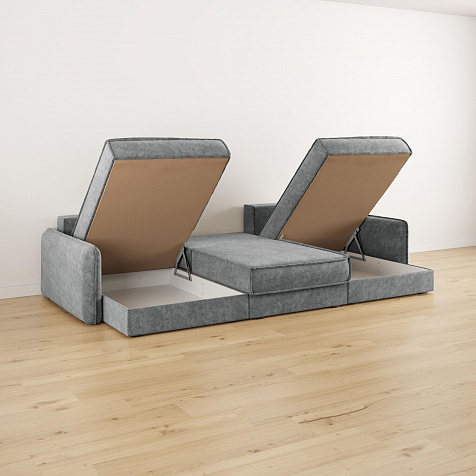 - 3 короба для белья. В диванной секции и оттоманках предусмотрены вместительные коробы для хранения постельного белья и других вещей.