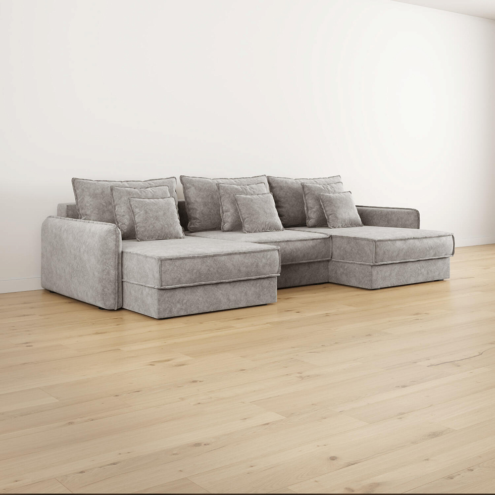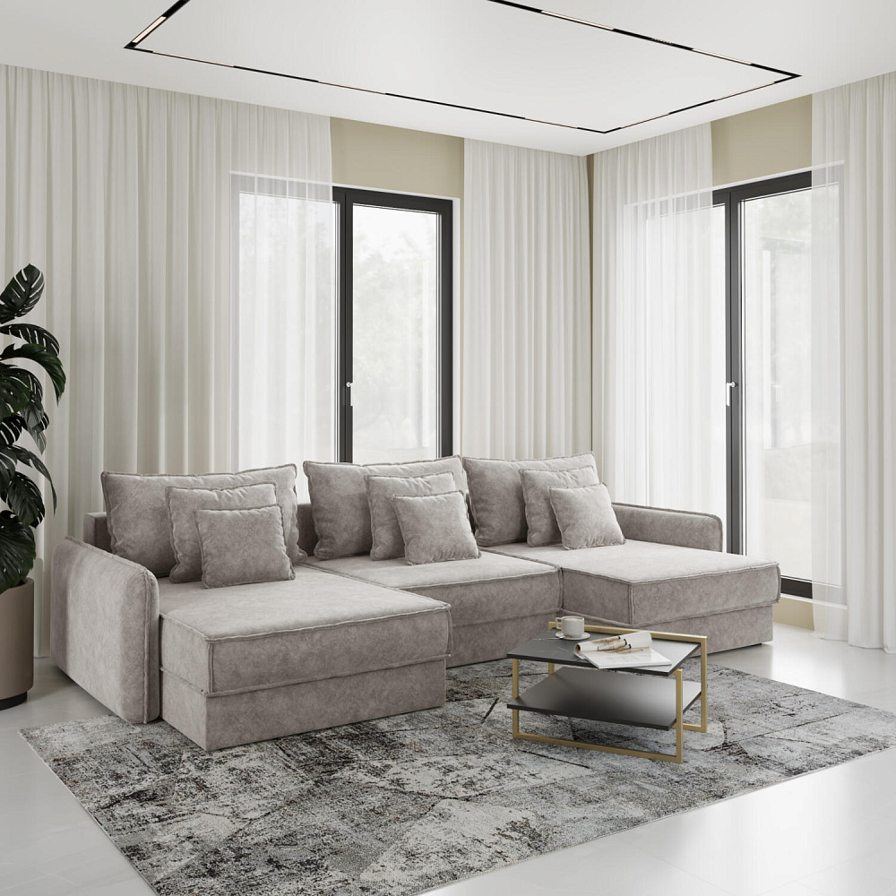 - Размер спального места — 300 х 147 см. Диван легко трансформируется в полноценное спальное место для сна и отдыха двух человек.
