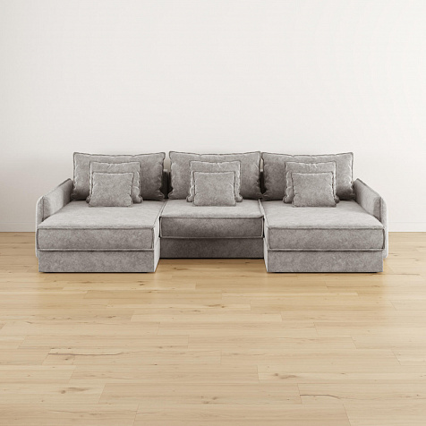 - 9 подушек в комплекте. 3 приспинных и 6 декоративных подушек разных размеров позволят скорректировать глубину посадки.