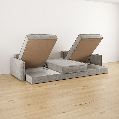- 3 короба для белья. В диванной секции и оттоманках предусмотрены вместительные коробы для хранения постельного белья и других вещей.