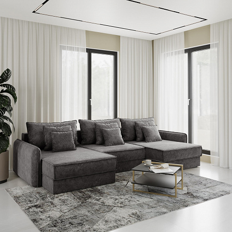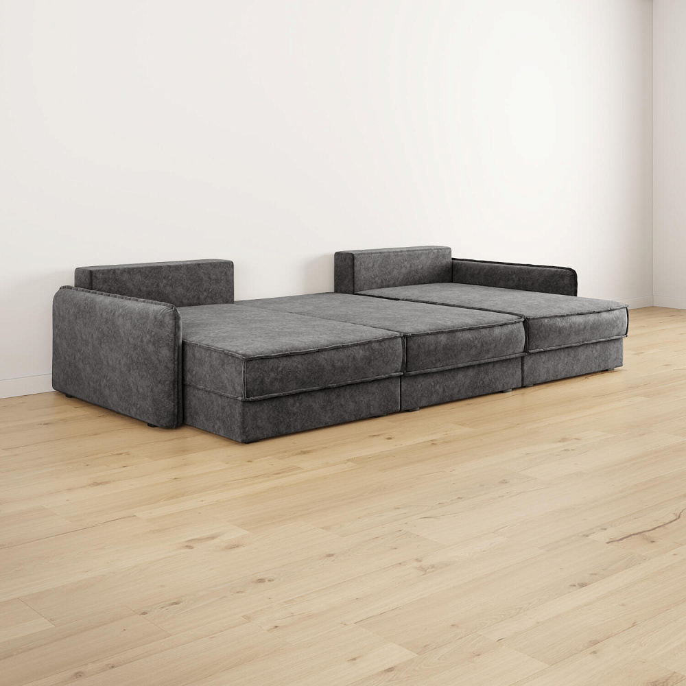 - Размер спального места — 300 х 147 см. Диван легко трансформируется в полноценное спальное место для сна и отдыха двух человек.