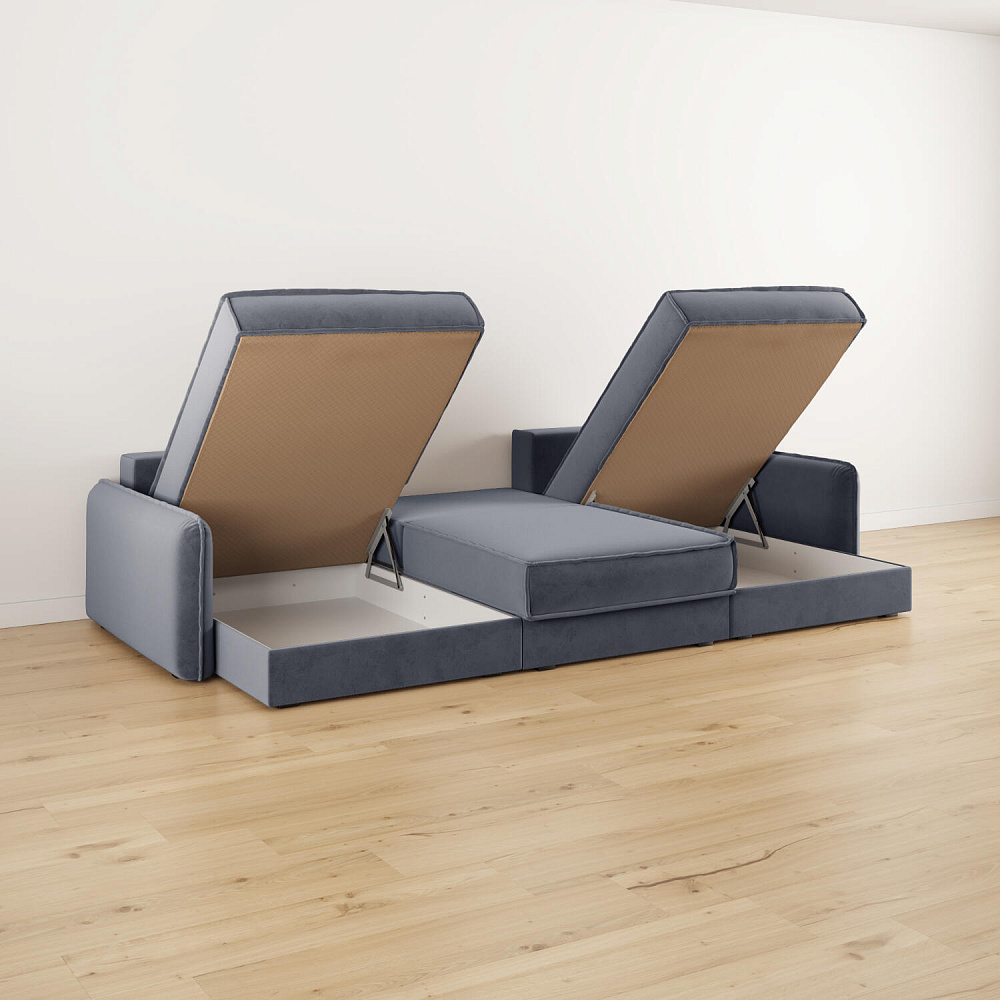 - 3 короба для белья. В диванной секции и оттоманках предусмотрены вместительные коробы для хранения постельного белья и других вещей.