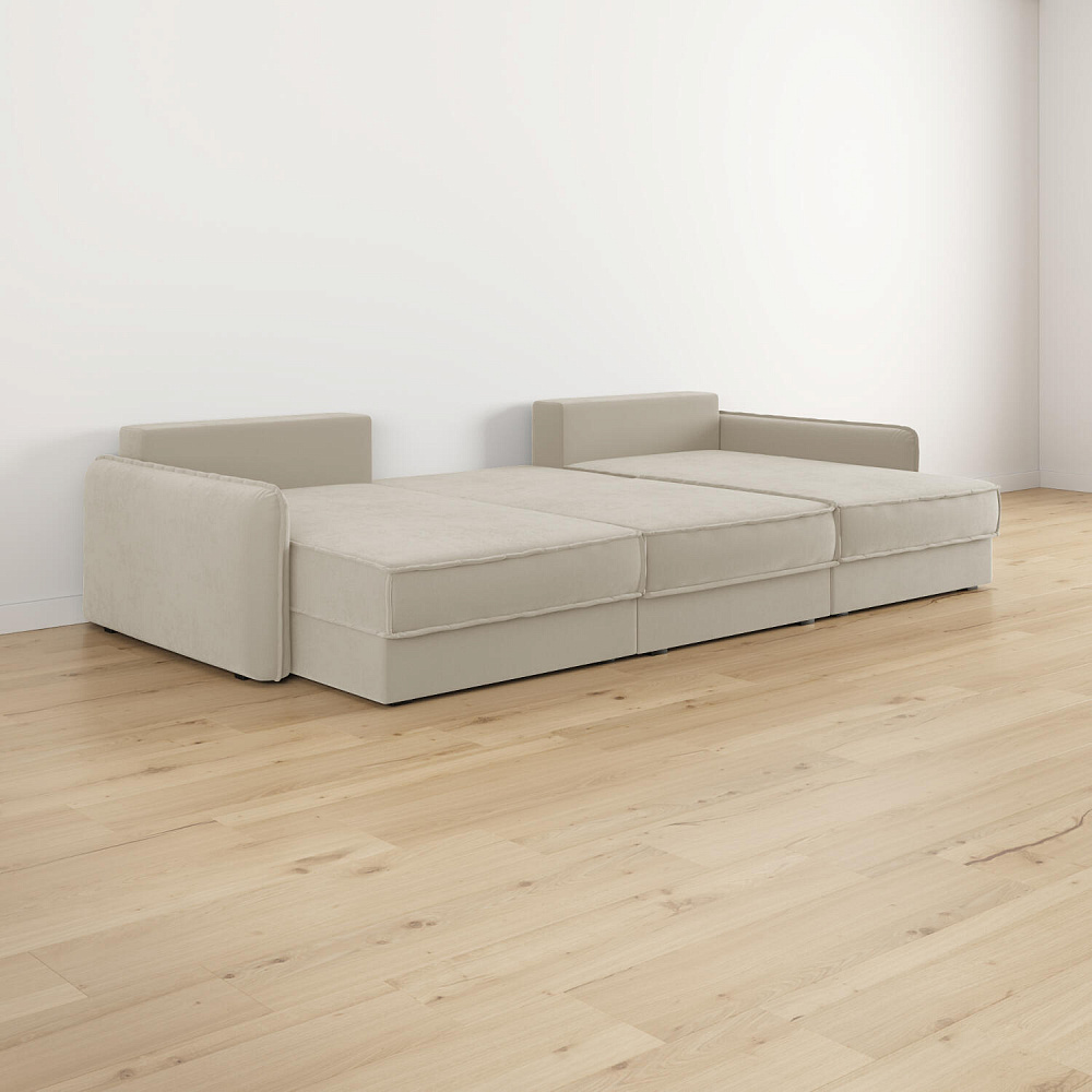 - Размер спального места — 300 х 147 см. Диван легко трансформируется в полноценное спальное место для сна и отдыха двух человек.