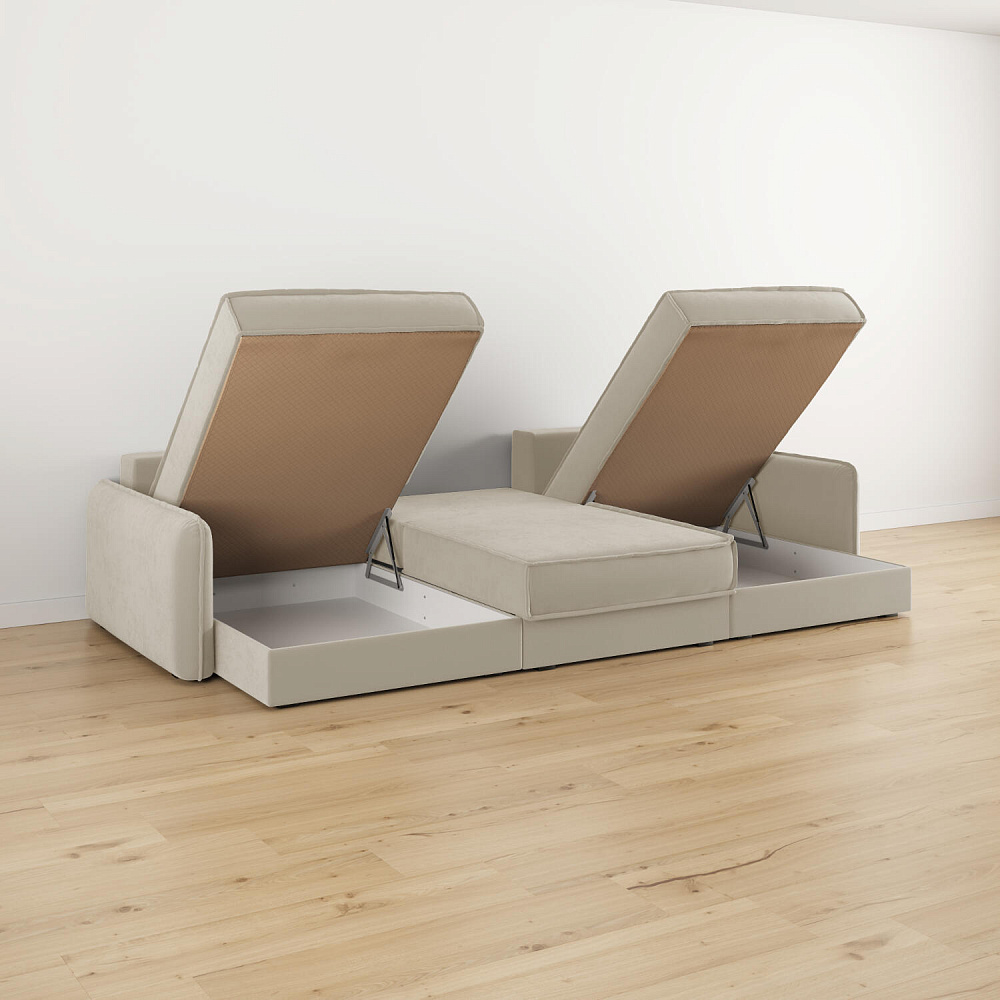- 3 короба для белья. В диванной секции и оттоманках предусмотрены вместительные коробы для хранения постельного белья и других вещей.