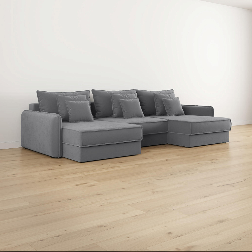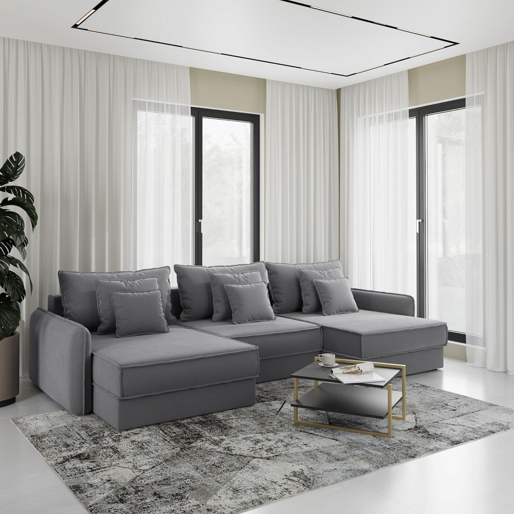 - Размер спального места — 300 х 147 см. Диван легко трансформируется в полноценное спальное место для сна и отдыха двух человек.