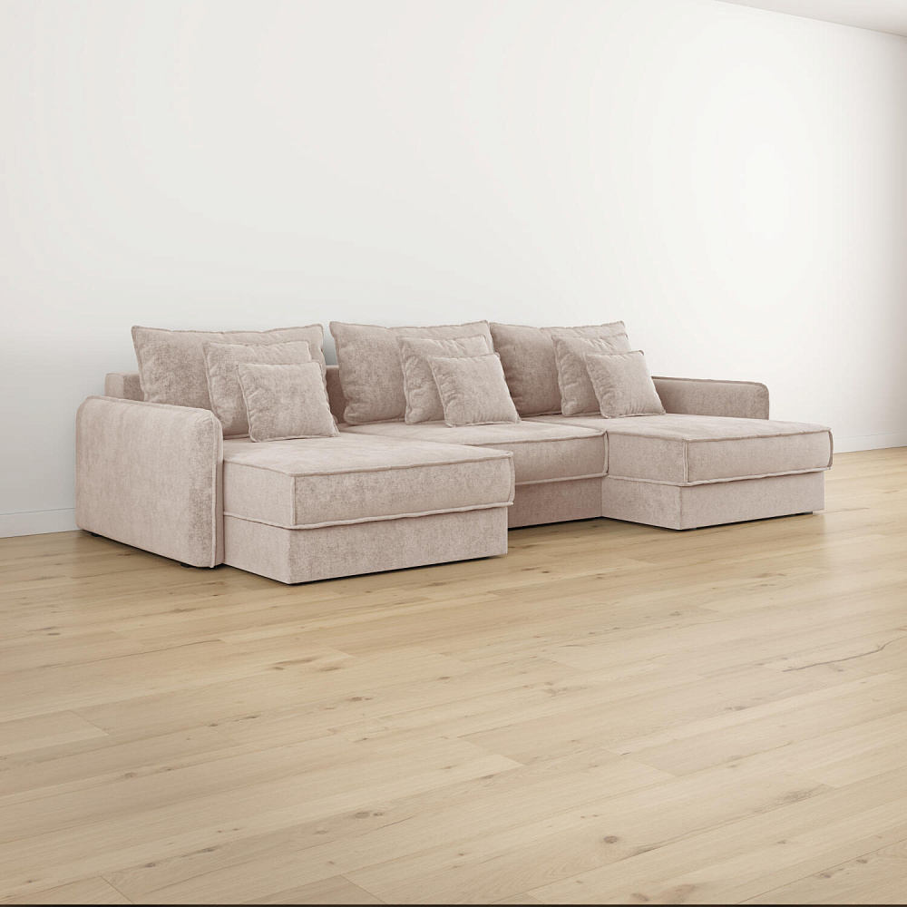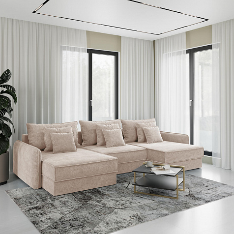 - Размер спального места — 300 х 147 см. Диван легко трансформируется в полноценное спальное место для сна и отдыха двух человек.