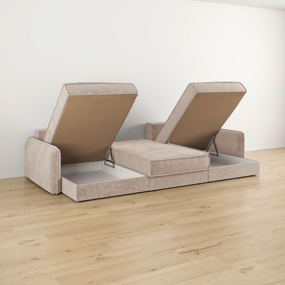 - 3 короба для белья. В диванной секции и оттоманках предусмотрены вместительные коробы для хранения постельного белья и других вещей.