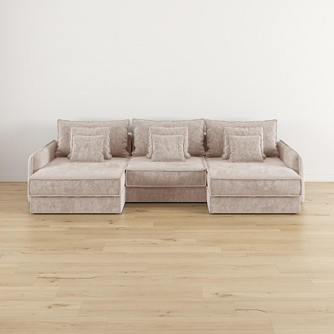 - 9 подушек в комплекте. 3 приспинных и 6 декоративных подушек разных размеров позволят скорректировать глубину посадки.