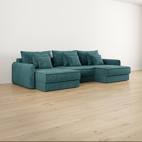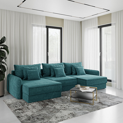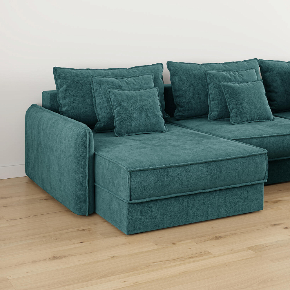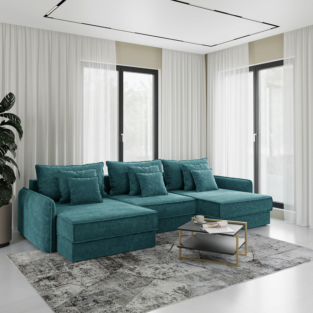 - Размер спального места — 300 х 147 см. Диван легко трансформируется в полноценное спальное место для сна и отдыха двух человек.