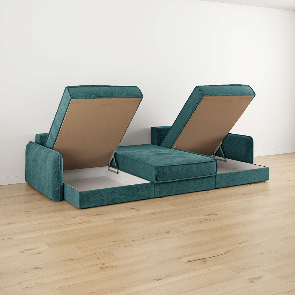- 3 короба для белья. В диванной секции и оттоманках предусмотрены вместительные коробы для хранения постельного белья и других вещей.