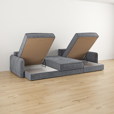- 3 короба для белья. В диванной секции и оттоманках предусмотрены вместительные коробы для хранения постельного белья и других вещей.