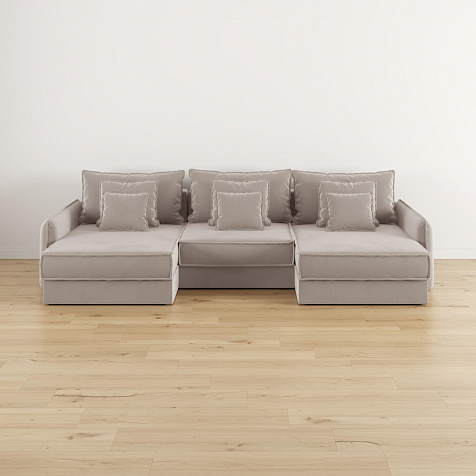 - 9 подушек в комплекте. 3 приспинных и 6 декоративных подушек разных размеров позволят скорректировать глубину посадки.