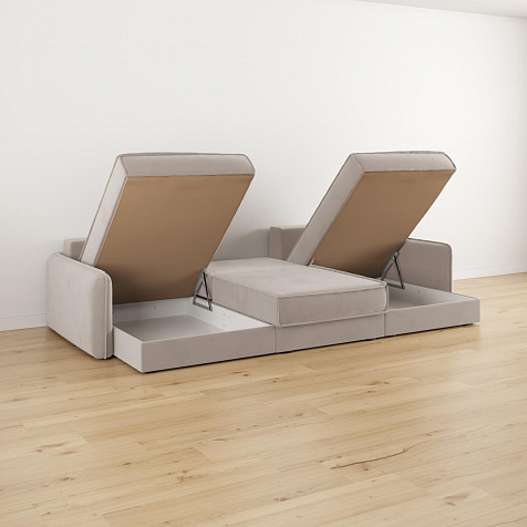 - 3 короба для белья. В диванной секции и оттоманках предусмотрены вместительные коробы для хранения постельного белья и других вещей.