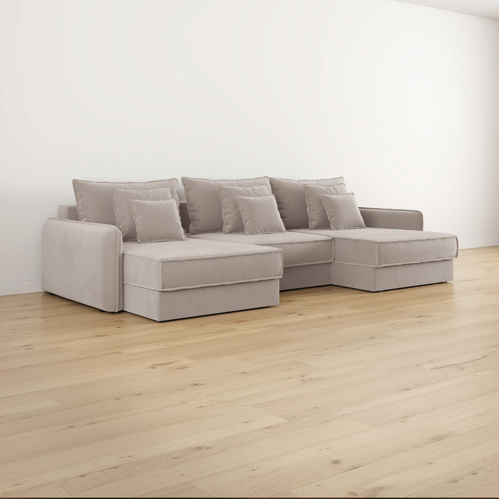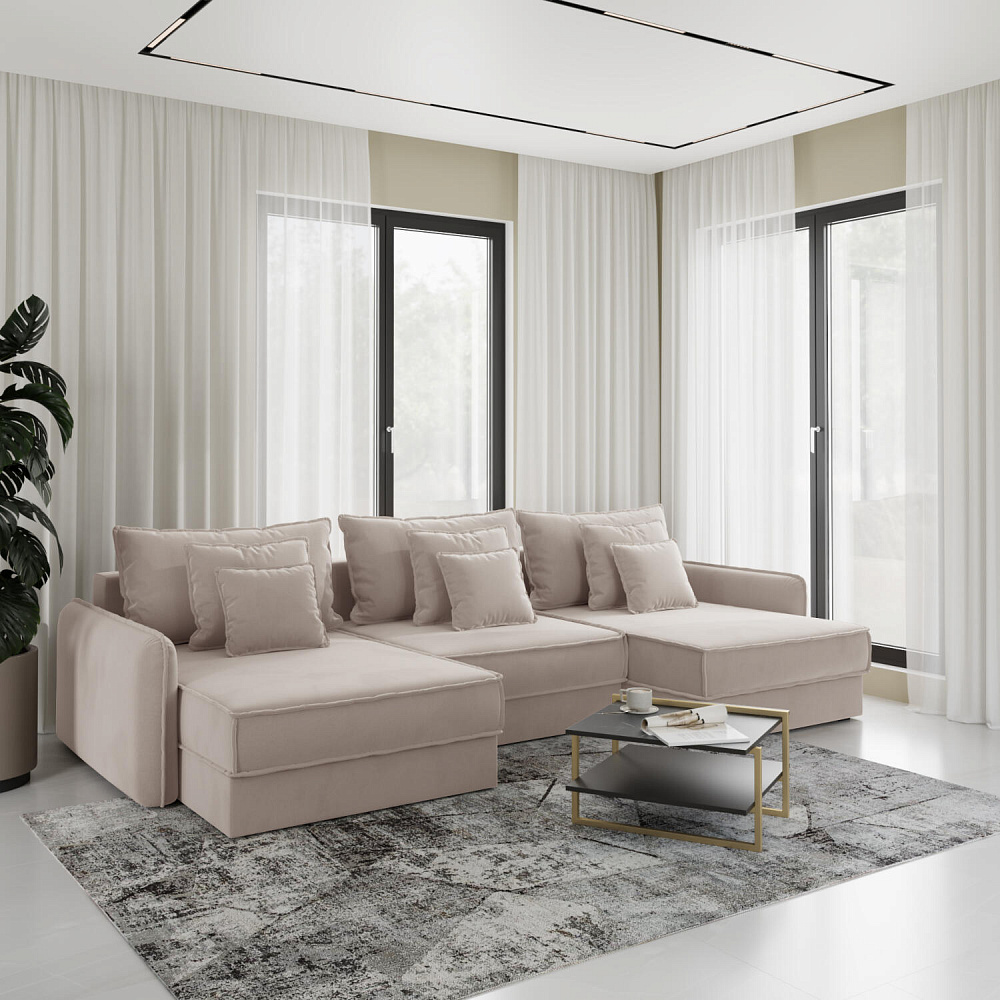 - Размер спального места — 300 х 147 см. Диван легко трансформируется в полноценное спальное место для сна и отдыха двух человек.