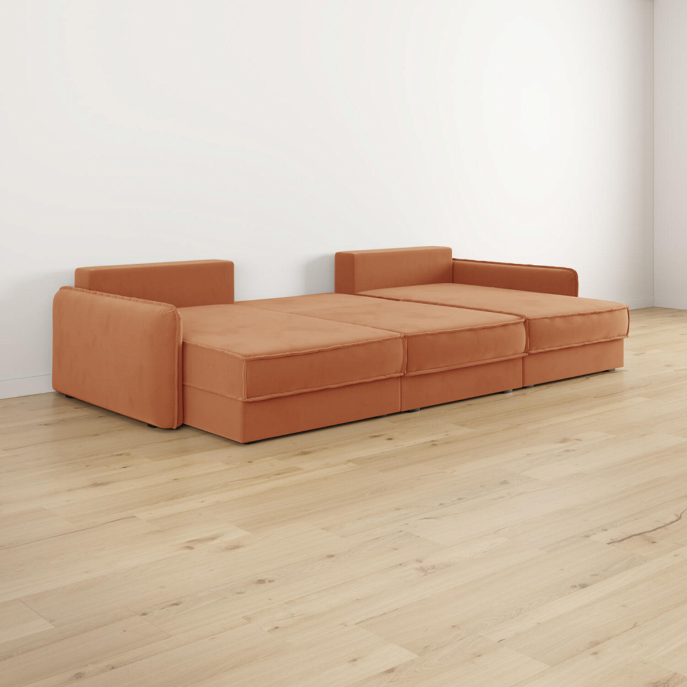 - Размер спального места — 300 х 147 см. Диван легко трансформируется в полноценное спальное место для сна и отдыха двух человек.