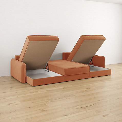 - 3 короба для белья. В диванной секции и оттоманках предусмотрены вместительные коробы для хранения постельного белья и других вещей.