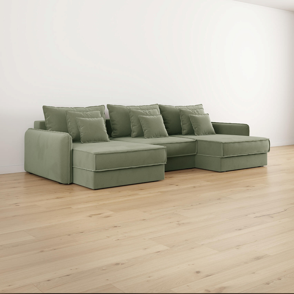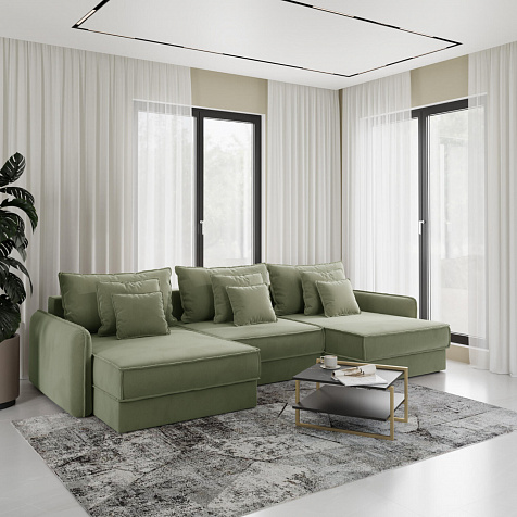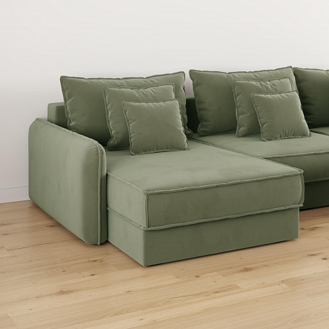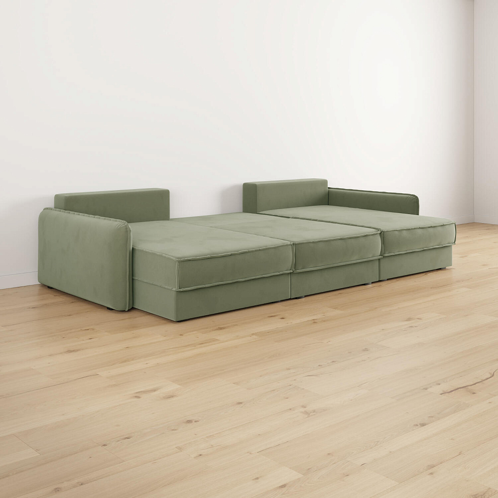 - Размер спального места — 300 х 147 см. Диван легко трансформируется в полноценное спальное место для сна и отдыха двух человек.