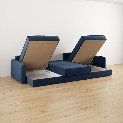 - 3 короба для белья. В диванной секции и оттоманках предусмотрены вместительные коробы для хранения постельного белья и других вещей.