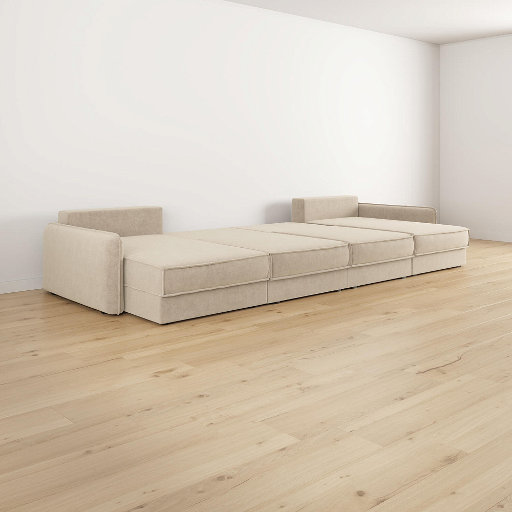 - Размер спального места — 400 х 167 см. Диван легко трансформируется в полноценное спальное место для сна и отдыха двух человек.
