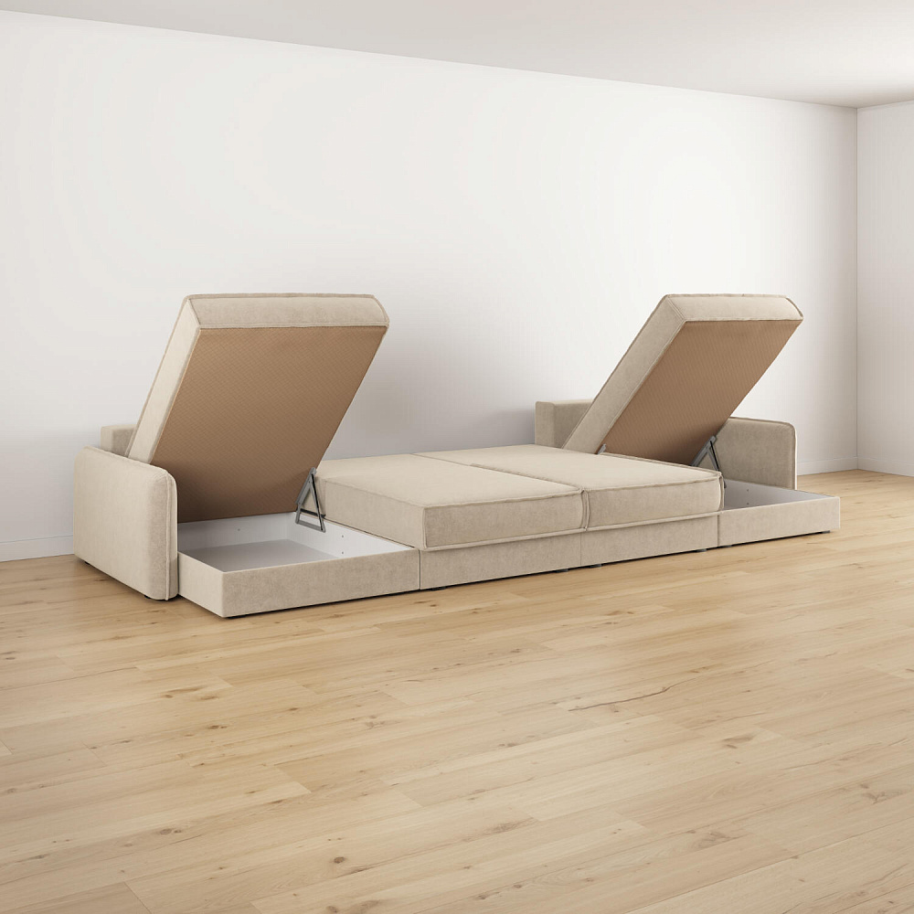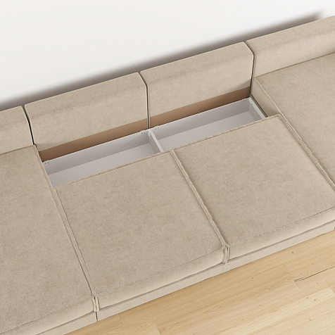 - 4 короба для белья. В диванных секциях и оттоманках предусмотрены вместительные коробы для хранения постельного белья и других вещей.