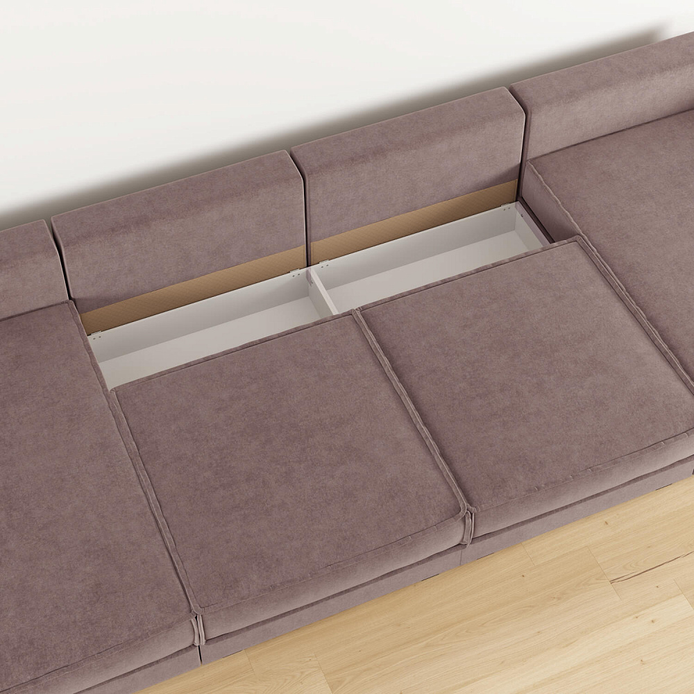 - 4 короба для белья. В диванных секциях и оттоманках предусмотрены вместительные коробы для хранения постельного белья и других вещей.