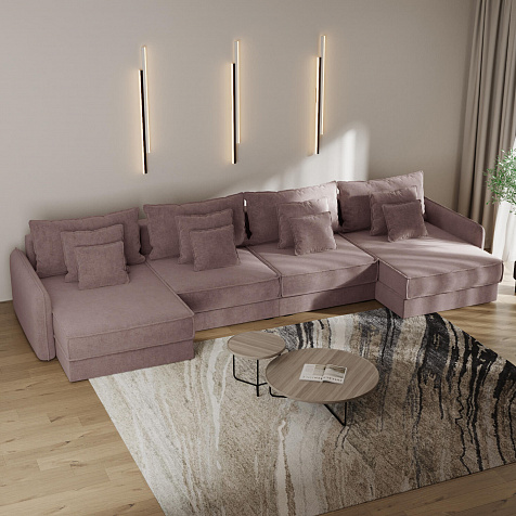 - 12 подушек в комплекте. 4 приспинных и 8 декоративных подушек разных размеров позволят скорректировать глубину посадки.