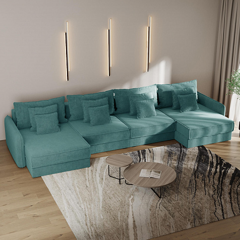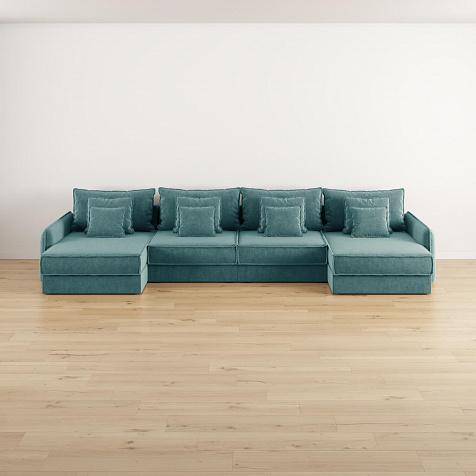 - 12 подушек в комплекте. 4 приспинных и 8 декоративных подушек разных размеров позволят скорректировать глубину посадки.