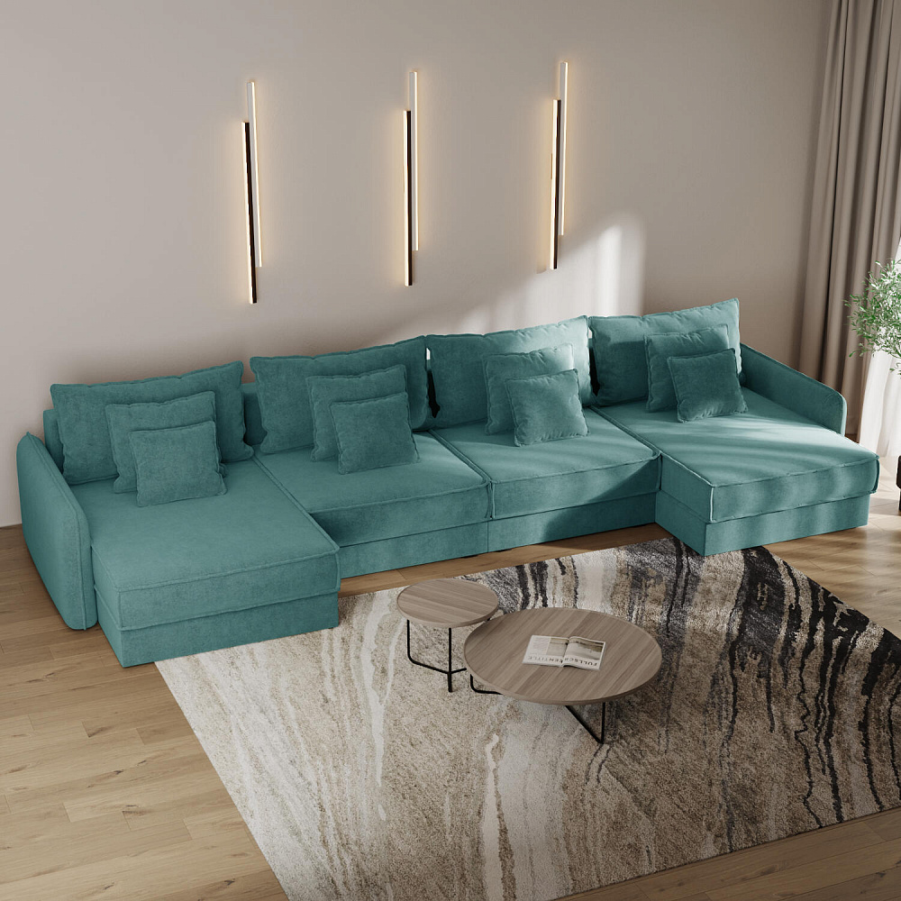 - Размер спального места — 400 х 167 см. Диван легко трансформируется в полноценное спальное место для сна и отдыха двух человек.