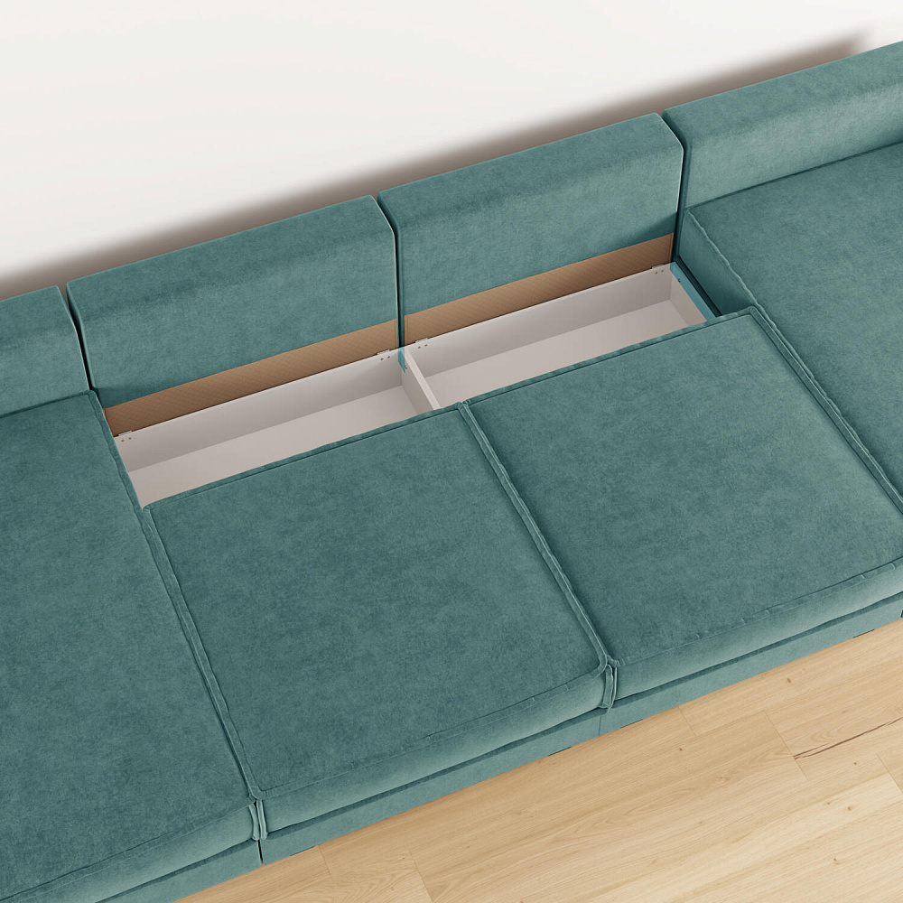 - 4 короба для белья. В диванных секциях и оттоманках предусмотрены вместительные коробы для хранения постельного белья и других вещей.